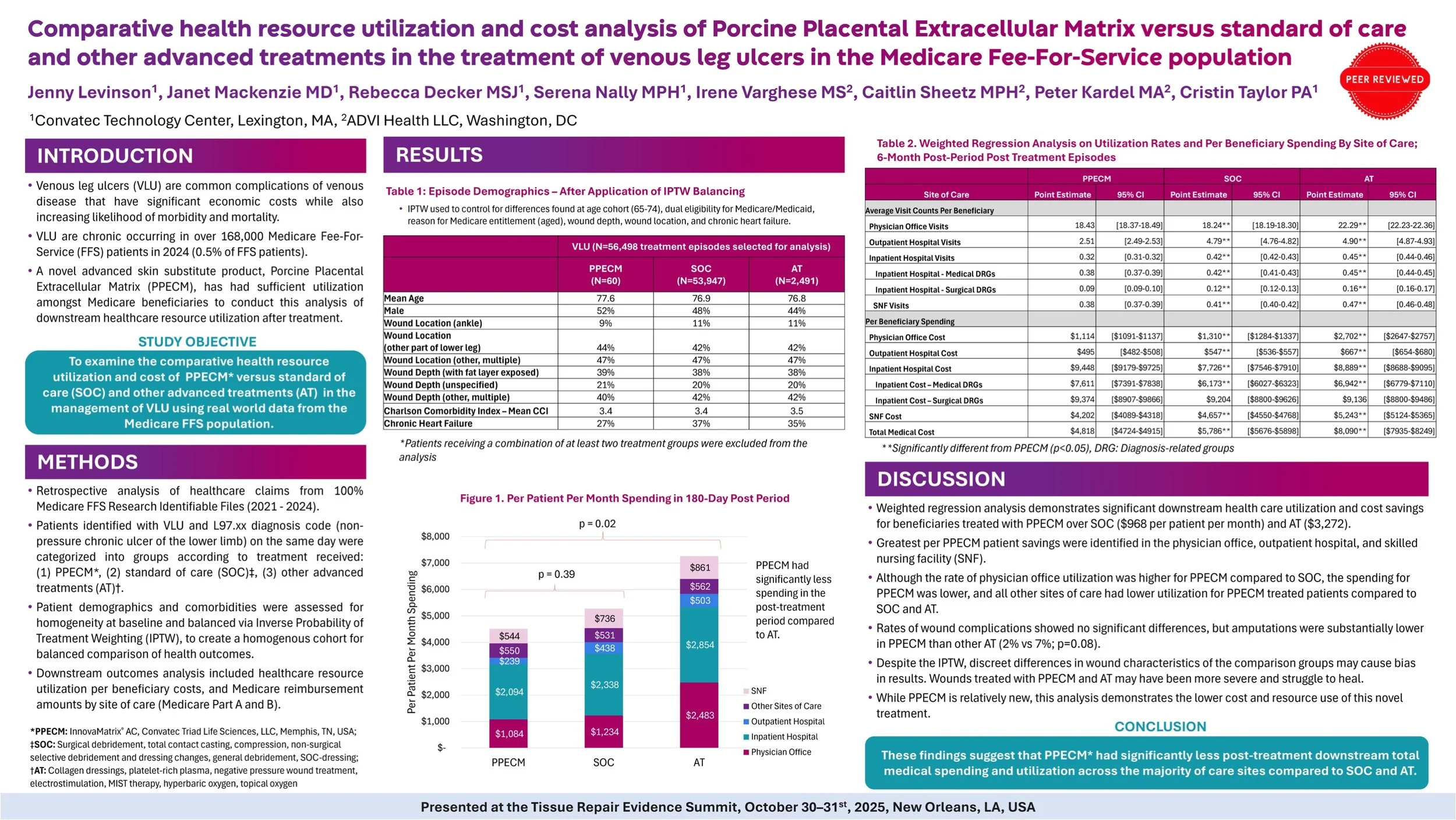 Convatech. Comparative health resource utilization and cost analysis of Porcine Placental Extracellular Matrix versus standard of care and other advanced treatments in the treatment of diabetic foot ulcers in the Medicare Fee-For-Service population Jenny Levinson1 , Janet Mackenzie MD1 , Rebecca Decker MSJ 1 , Serena Nally MPH1 , Irene Varghese MS 2 , Caitlin Sheetz MPH2 , Peter Kardel MA2 , Cristin Taylor PA1 1Convatec Technology Center, Lexington, MA, 2ADVI Health LLC, Washington, DC